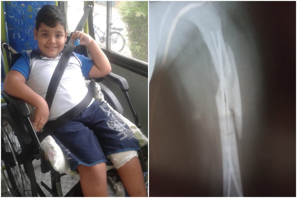 Menino que partiu a perna em três jogando queimada busca recuperação